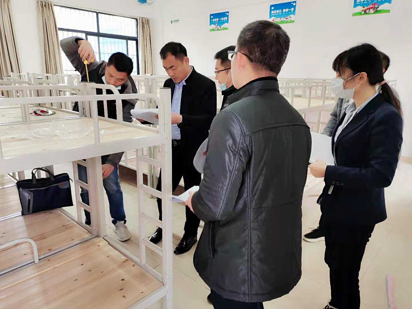 驗(yàn)收組檢查宿舍新床架規(guī)格