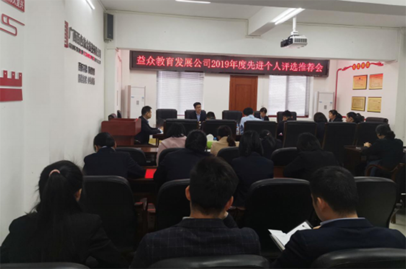 為進(jìn)一步提高干部職工的凝聚力和戰(zhàn)斗力,樹立典型,發(fā)揮先鋒模范作用,根據(jù)公司總部的《2019年度先進(jìn)集體、先進(jìn)個人評選表彰工作方案》文件要求,益眾教育公司組織開展2019年度評先評優(yōu)工作,公司本部、下屬公司全體管理人員參會。評先評優(yōu)工作本著公開、公平、公正的原則,以實(shí)事求是的態(tài)度,通過不記名投票方式進(jìn)行評選,選拔出一批政治素質(zhì)高、崗位技能強(qiáng)、工作完成滿意度佳、群眾評價好的先進(jìn)員工。