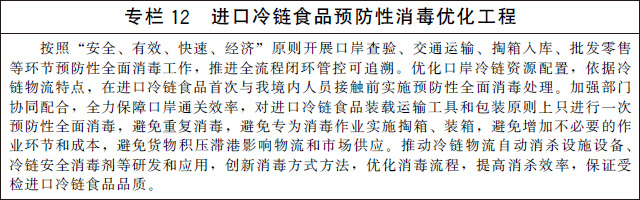 健全檢驗檢測檢疫體系。適應不同農產品檢驗檢測檢疫要求,完善覆蓋從種養(yǎng)殖、加工到銷售終端全鏈條以及冷鏈物流包裝、運載工具、作業(yè)環(huán)境等全要素的檢驗檢測檢疫體系。加強檢驗檢測檢疫設施建設和設備配置,完善應急檢驗檢測檢疫預案,實行閉環(huán)式疫情防控管理,防范非洲豬瘟、新冠肺炎、禽流感等疫情擴散風險,提高重大公共衛(wèi)生事件等應急處置能力。