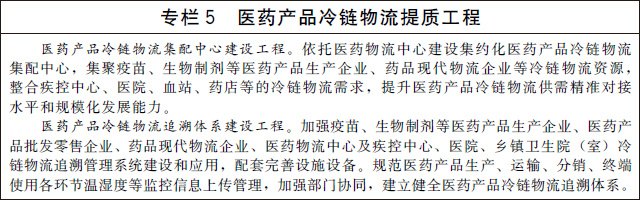 提升醫(yī)藥產品冷鏈物流應急保障水平。研究將醫(yī)藥產品冷鏈物流納入國家應急物資保障平臺,整合行業(yè)醫(yī)藥冷庫、車輛、標準化載器具等資源,健全應急聯動服務及統一調度機制,提高醫(yī)藥產品冷鏈應急保障能力。完善全國統一的醫(yī)藥產品冷鏈物流特別管理機制,保障緊急狀態(tài)下疫苗及其他醫(yī)藥產品冷鏈運輸暢通和物流過程質量安全。