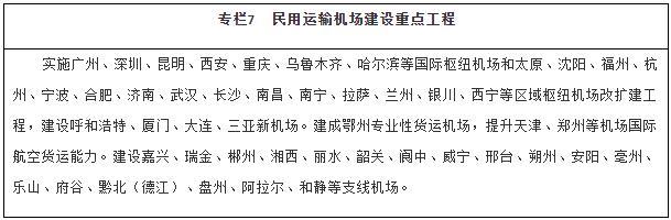 擴(kuò)大航空網(wǎng)絡(luò)覆蓋。推動區(qū)域機(jī)場群協(xié)同發(fā)展,建設(shè)京津冀、長三角、粵港澳大灣區(qū)、成渝等世界級機(jī)場群。適時(shí)啟動能力緊張樞紐機(jī)場改擴(kuò)建工程,強(qiáng)化樞紐機(jī)場綜合保障能力。合理加密機(jī)場布局,穩(wěn)步建設(shè)支線機(jī)場和專業(yè)性貨運(yùn)樞紐機(jī)場,提升綜合性機(jī)場貨運(yùn)能力和利用率。有序推進(jìn)通用機(jī)場規(guī)劃建設(shè),構(gòu)建區(qū)域短途運(yùn)輸網(wǎng)絡(luò),探索通用航空與低空旅游、應(yīng)急救援、醫(yī)療救護(hù)、警務(wù)航空等融合發(fā)展。優(yōu)化航路航線網(wǎng)絡(luò),加強(qiáng)軍民航空管基礎(chǔ)設(shè)施建設(shè),推廣應(yīng)用空管新技術(shù)。