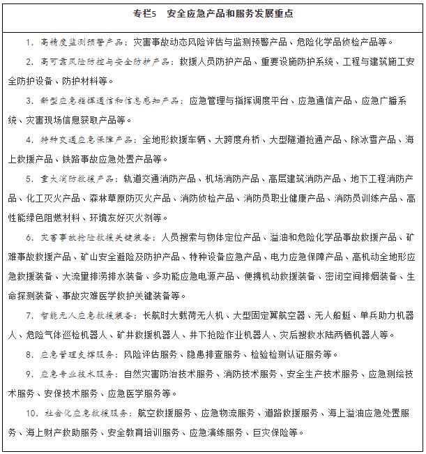 支持企業(yè)發(fā)展。引導企業(yè)加大應急能力建設投入,支持安全應急領域有實力的企業(yè)做強做優(yōu),培育一批在國際、國內市場具有較強競爭力的安全應急產(chǎn)業(yè)大型企業(yè)集團,鼓勵特色明顯、創(chuàng)新能力強的中小微企業(yè)利用現(xiàn)有資金渠道加速發(fā)展。