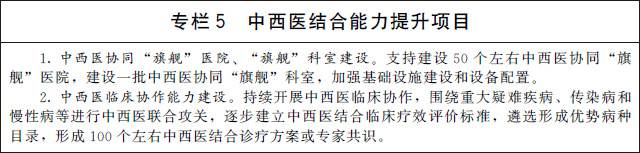 加強中西醫(yī)結(jié)合醫(yī)院服務(wù)能力建設(shè)。建立符合中西醫(yī)結(jié)合醫(yī)院特點和規(guī)律的績效評價指標體系,修訂中西醫(yī)結(jié)合醫(yī)院工作指南。加強中西醫(yī)結(jié)合醫(yī)院業(yè)務(wù)用房等基礎(chǔ)設(shè)施建設(shè),強化設(shè)備配置。開展中西醫(yī)結(jié)合學(xué)科和??平ㄔO(shè),促進中西醫(yī)聯(lián)合診療模式改革創(chuàng)新。