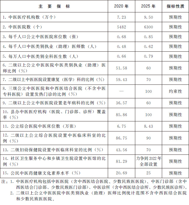 (三)發(fā)展目標。到2025年,中醫(yī)藥健康服務(wù)能力明顯增強,中醫(yī)藥高質(zhì)量發(fā)展政策和體系進一步完善,中醫(yī)藥振興發(fā)展取得積極成效,在健康中國建設(shè)中的獨特優(yōu)勢得到充分發(fā)揮。
